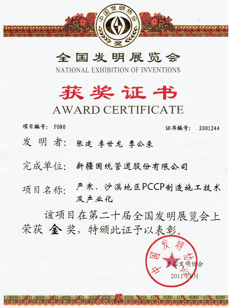 • 中國發明展覽金獎